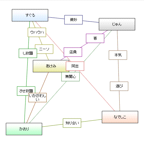 こいつは相関ジェネレータというものでばかこのの主要人物でやってみた結果なのだが、どうも合ってる気がしないでもないと思わないか?